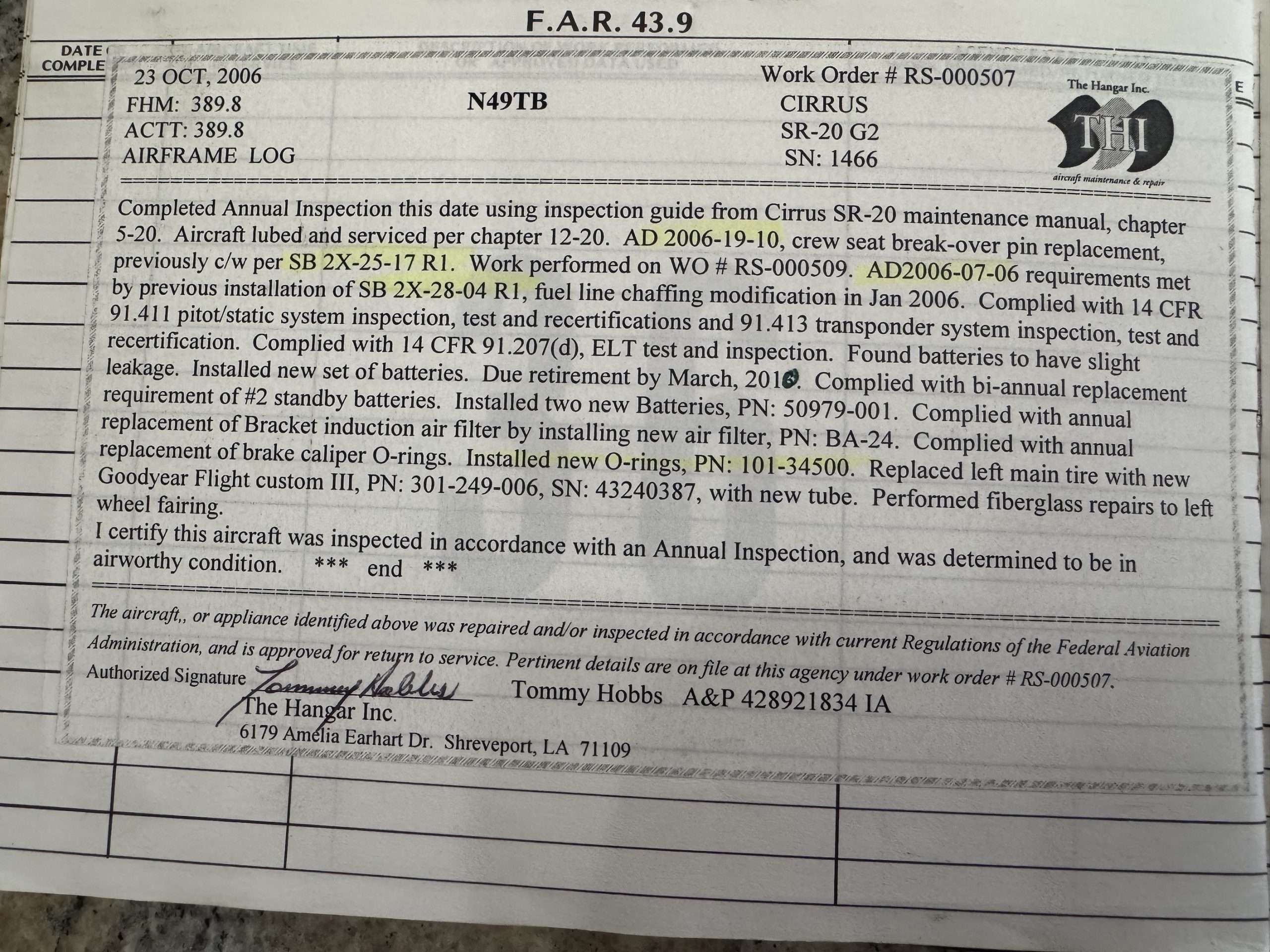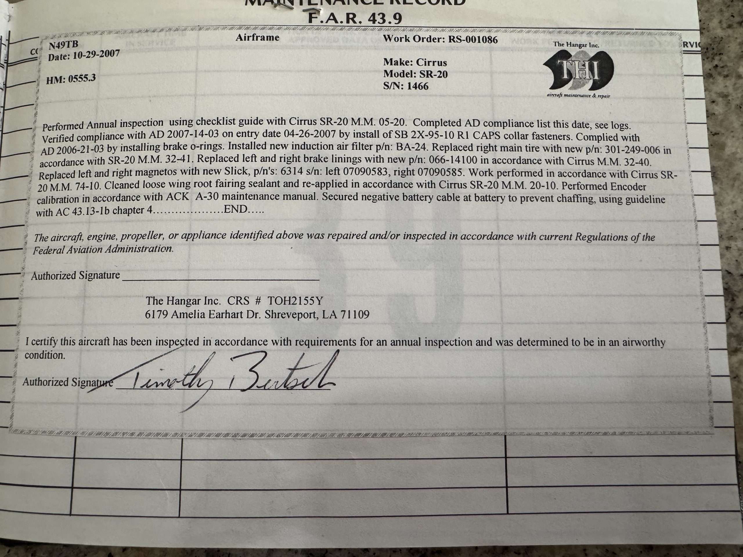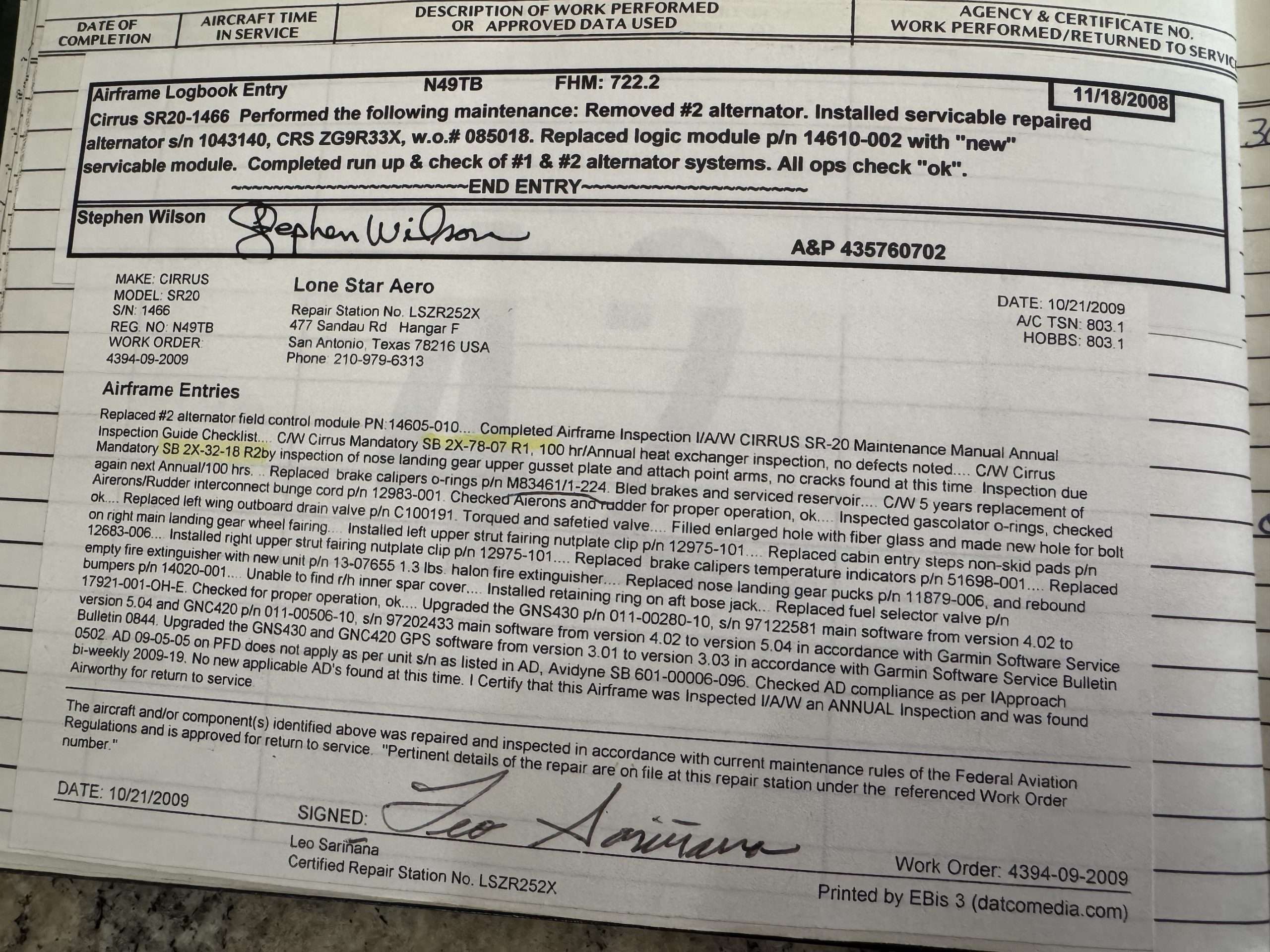 2004 Cirrus SR20 G2, 2100ttaf Hobbs, Brand new HEAVY case engine 230 SMOH