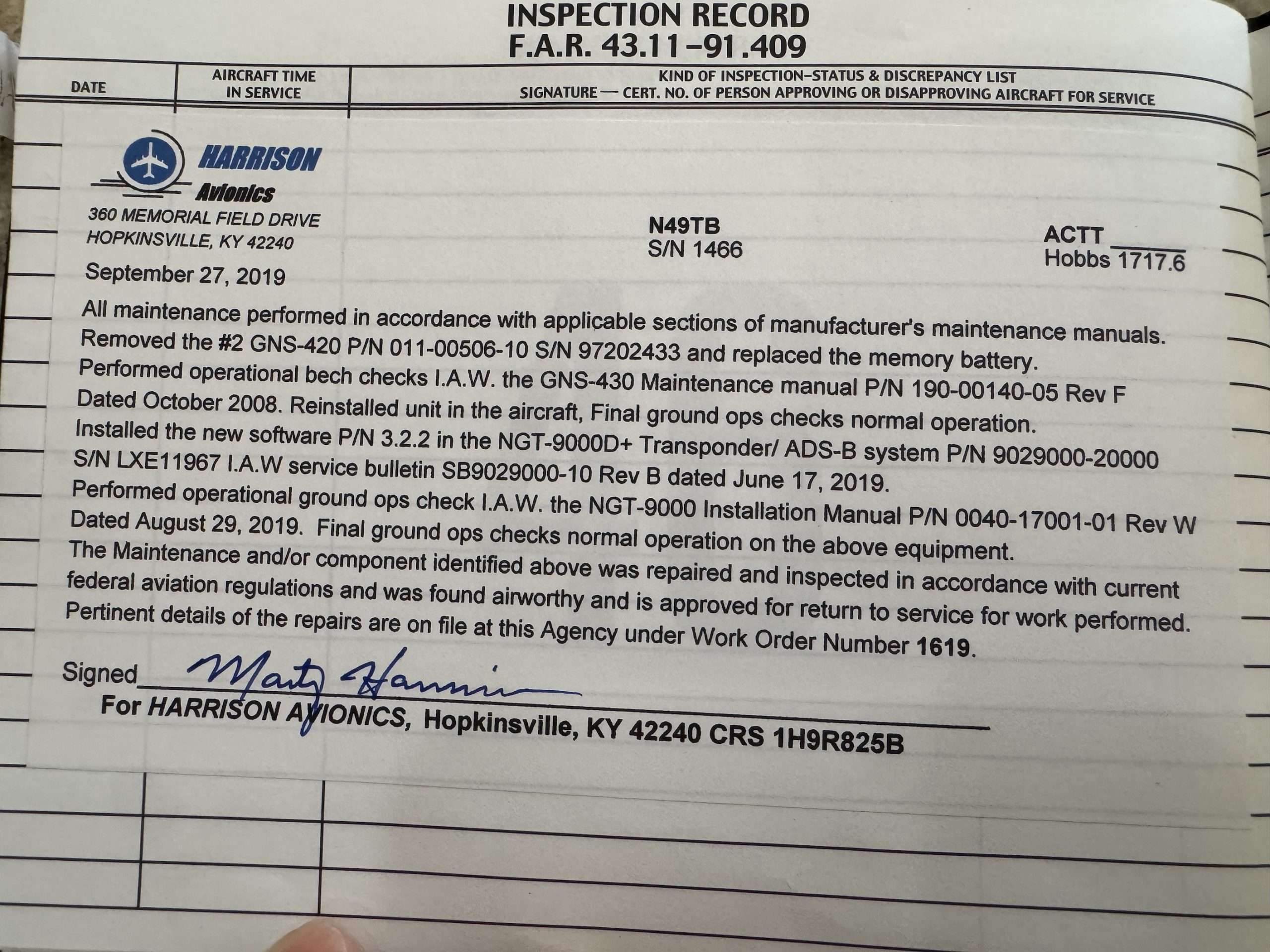 Garmin GNS 420 just reconditioned 10/2025