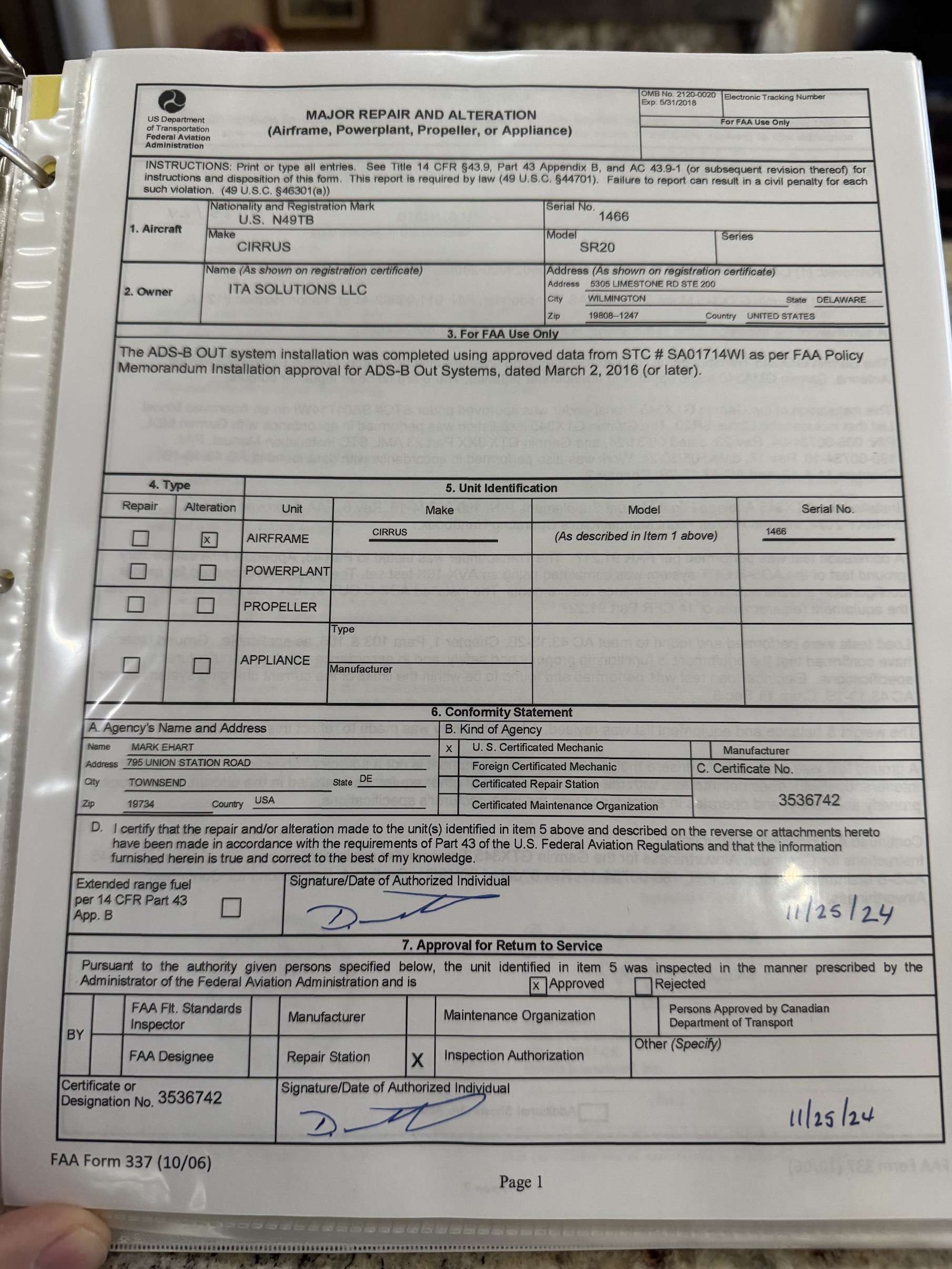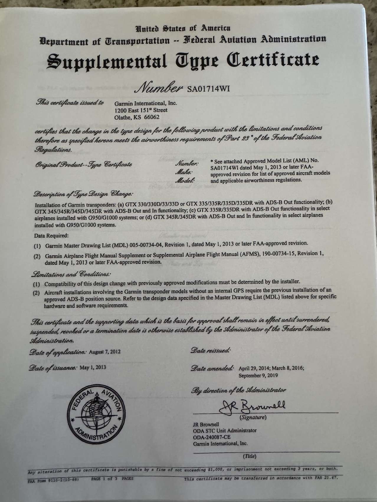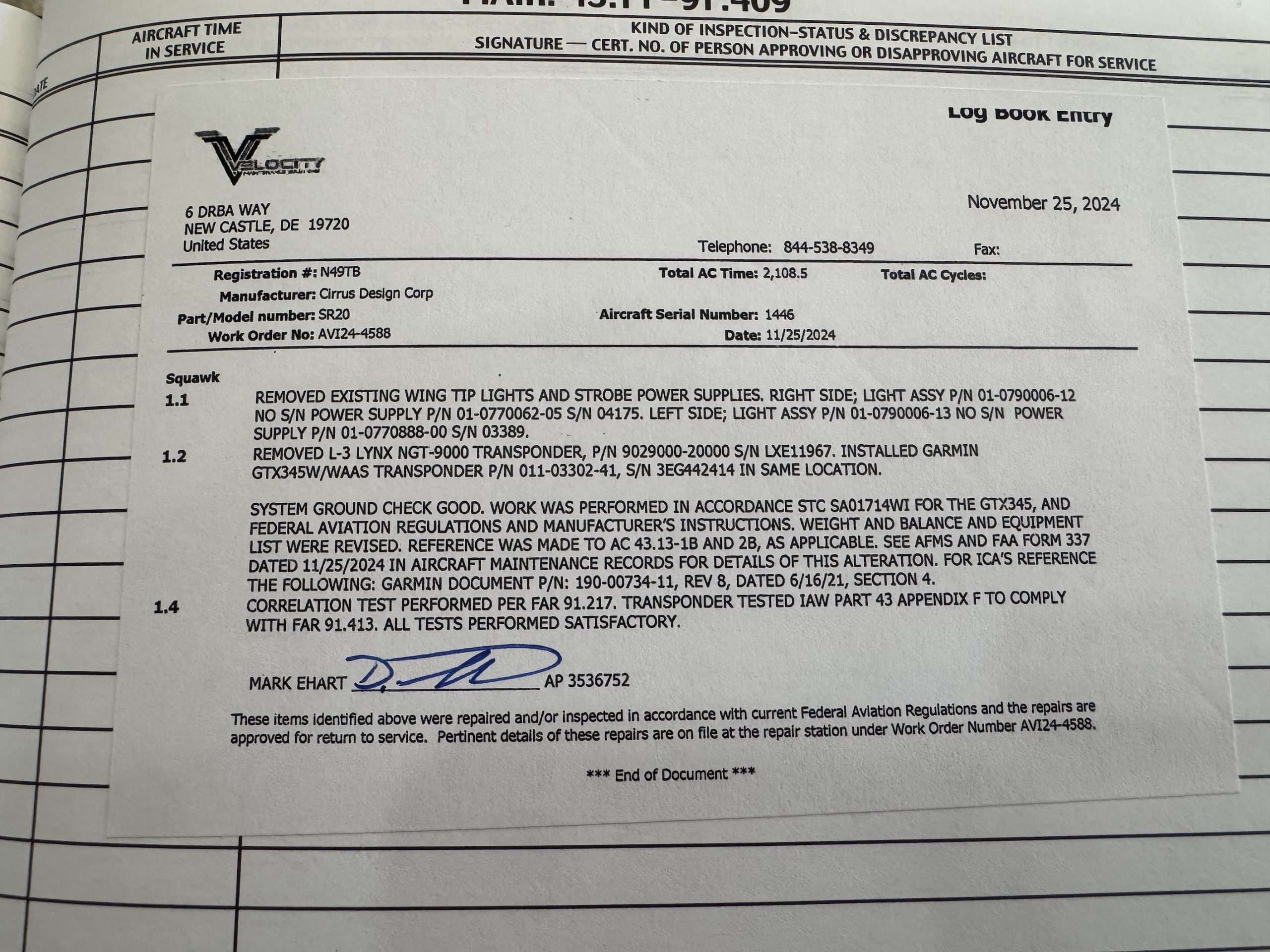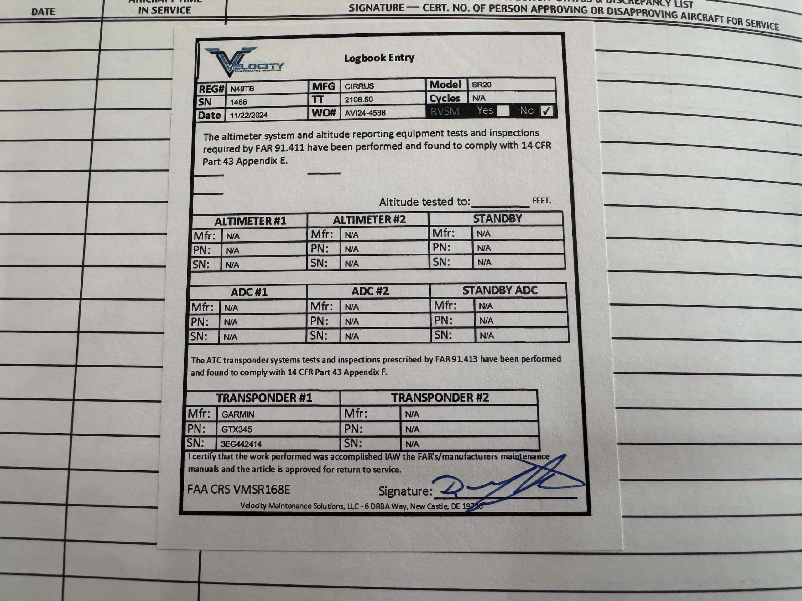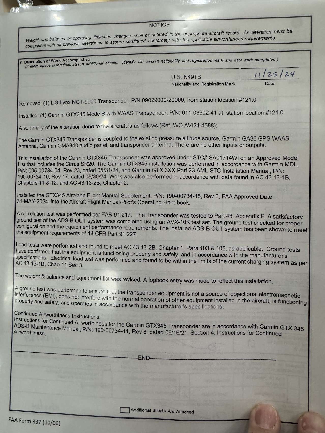 Garmin 345 transponder with ADSB in/out