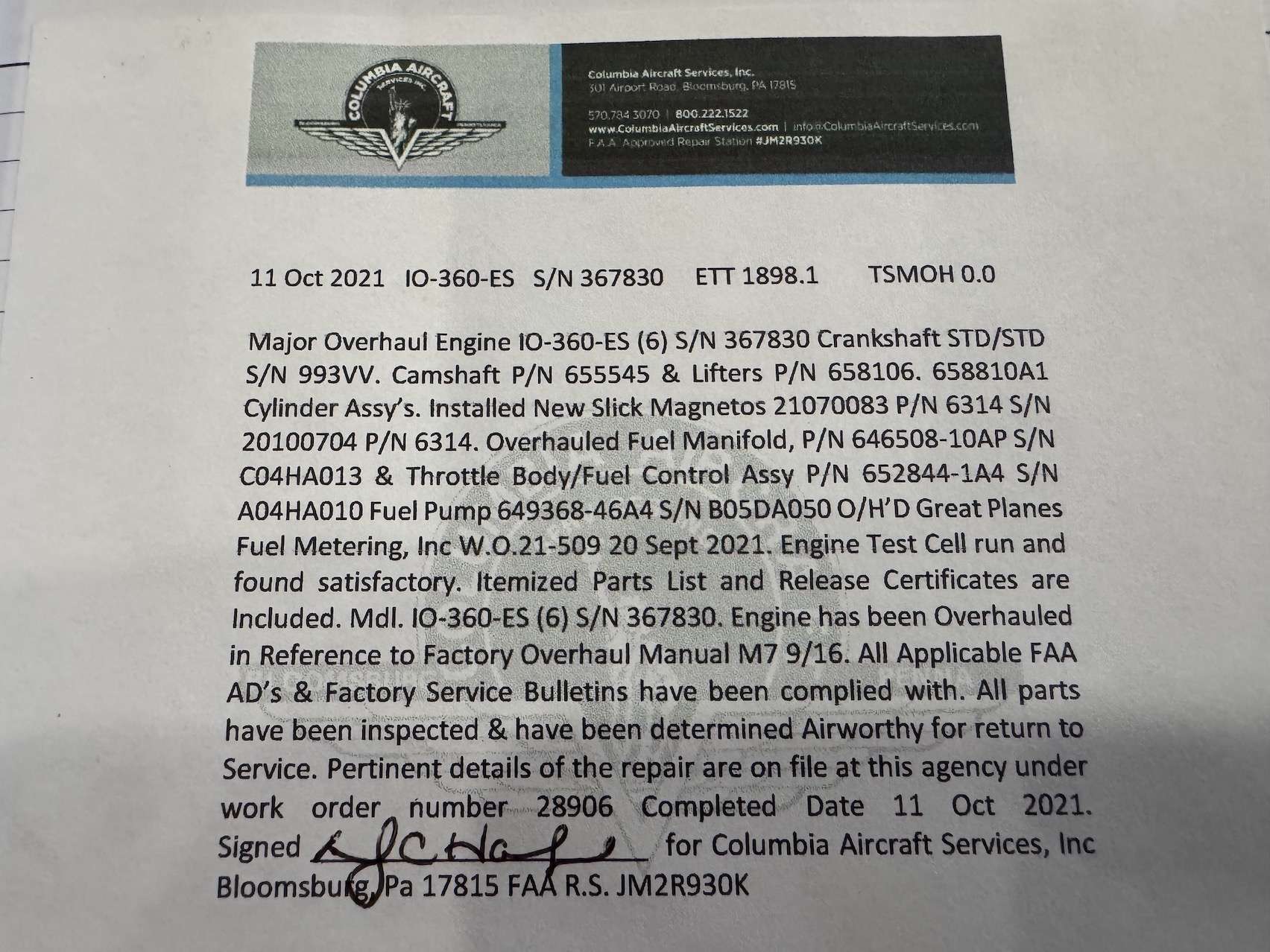 This aircraft has just replaced the often cracked case of the IO-360 ES engine with a NEW FACTORY HEAVY CASE. $25,000 repair, This engine has 250 SMOH (overhauled 2021) with new cylinders, new cam, new liters. factory new heavy case 2025.