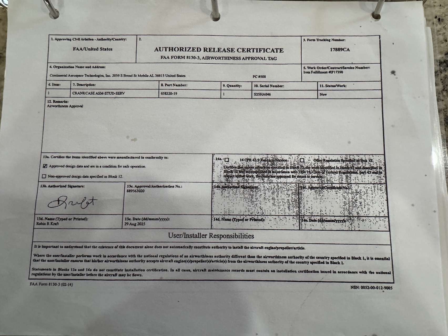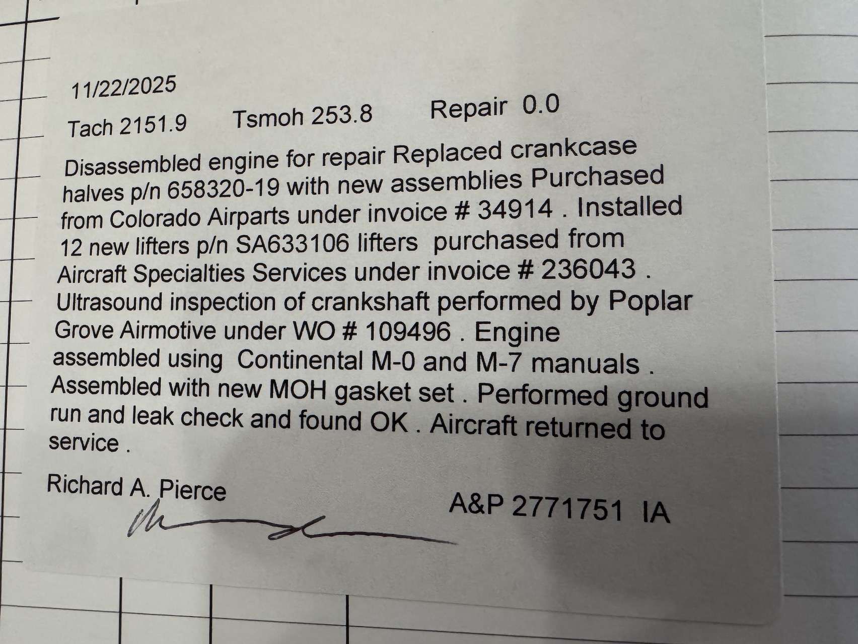 The engine had 230 SMOH and found it had the dreaded cracked case, which is known to happen on the original case.